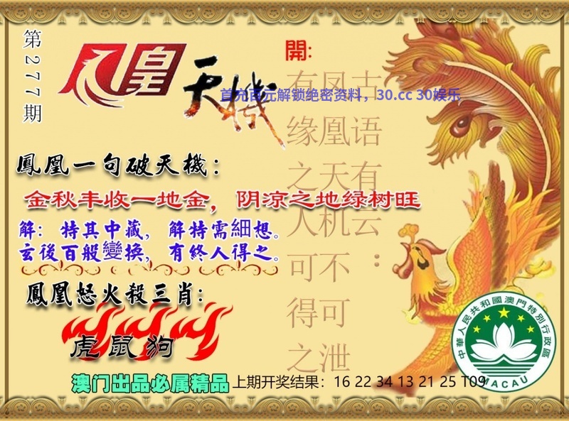276期四字平特【如虎添翼】开:虎16准 |