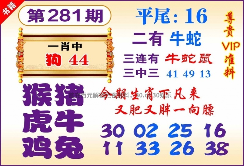 274期:家野两肖『家禽+虎猴』开狗44准 |